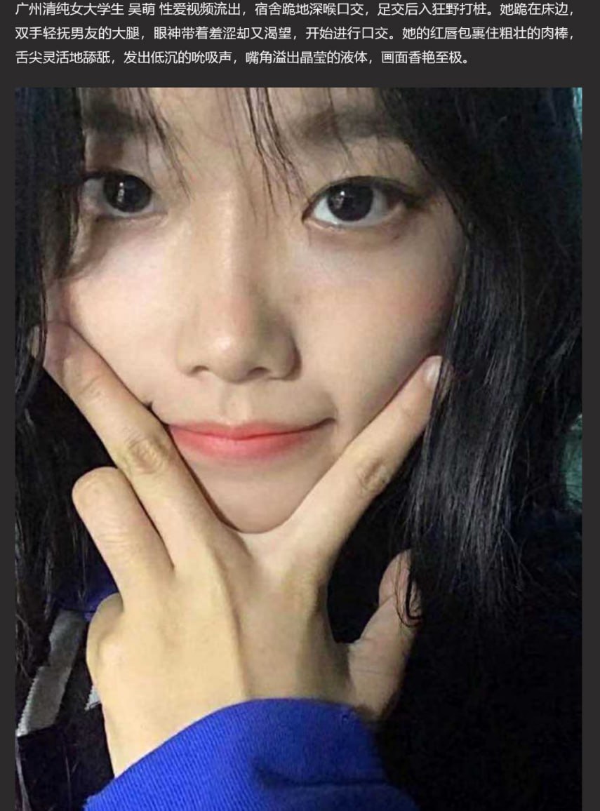 广州清纯女大学生吴萌,性爱视频流出,宿舍跪地深喉口交,足交后入狂野打桩